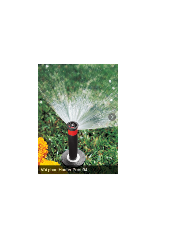 - Vòi tưới Hunter Pros-04 là vòi tưới cảnh quan cho các khu vực có cây bụi tầm thấp. Với khả năng nhô cao 10cm rất phù hợp cho các khu vực trồng cỏ với diện tích vừa phải.